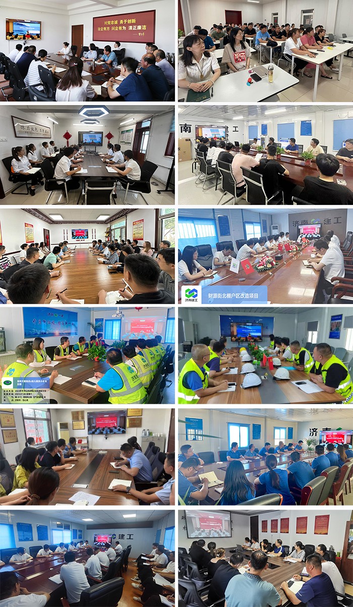 上午的会议采取“线下+线上”相结合的方式,集团公司领导班子全体成员,所属各单位总经理、总部各部室负责人参加了主会场的线下会议;所属各单位、总部各部室以部室或项目部为单位组织全体职工在线同步收看了会议直播。